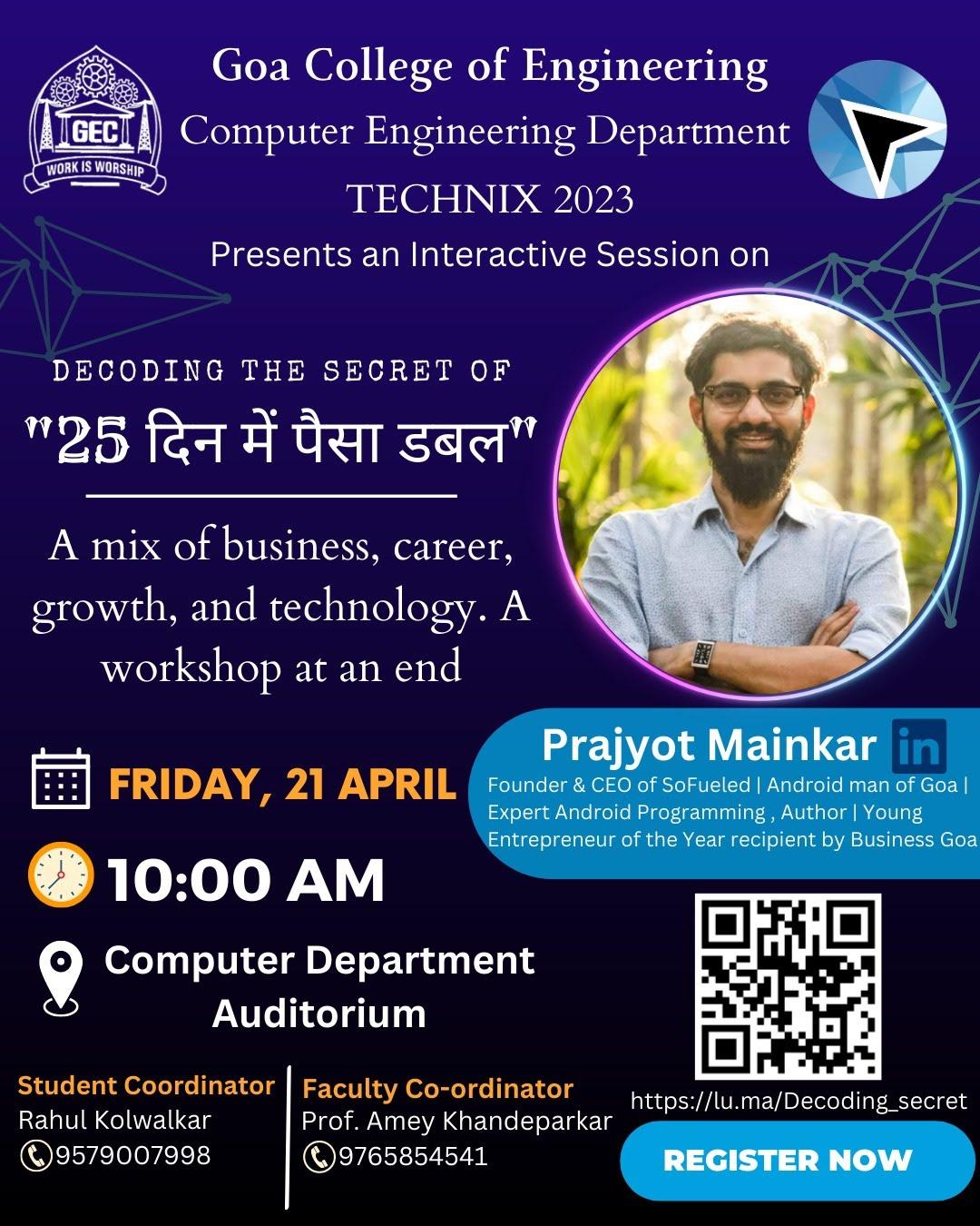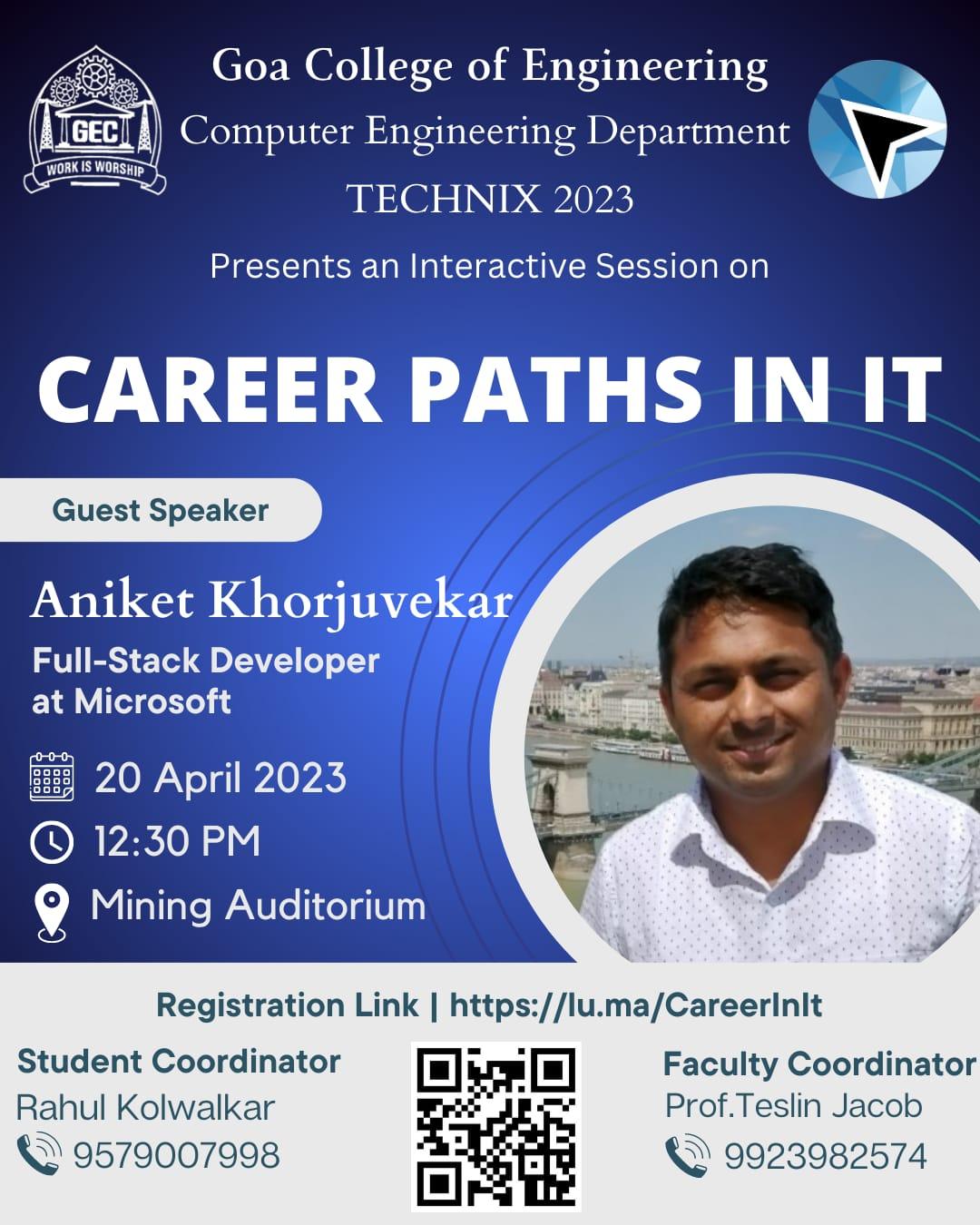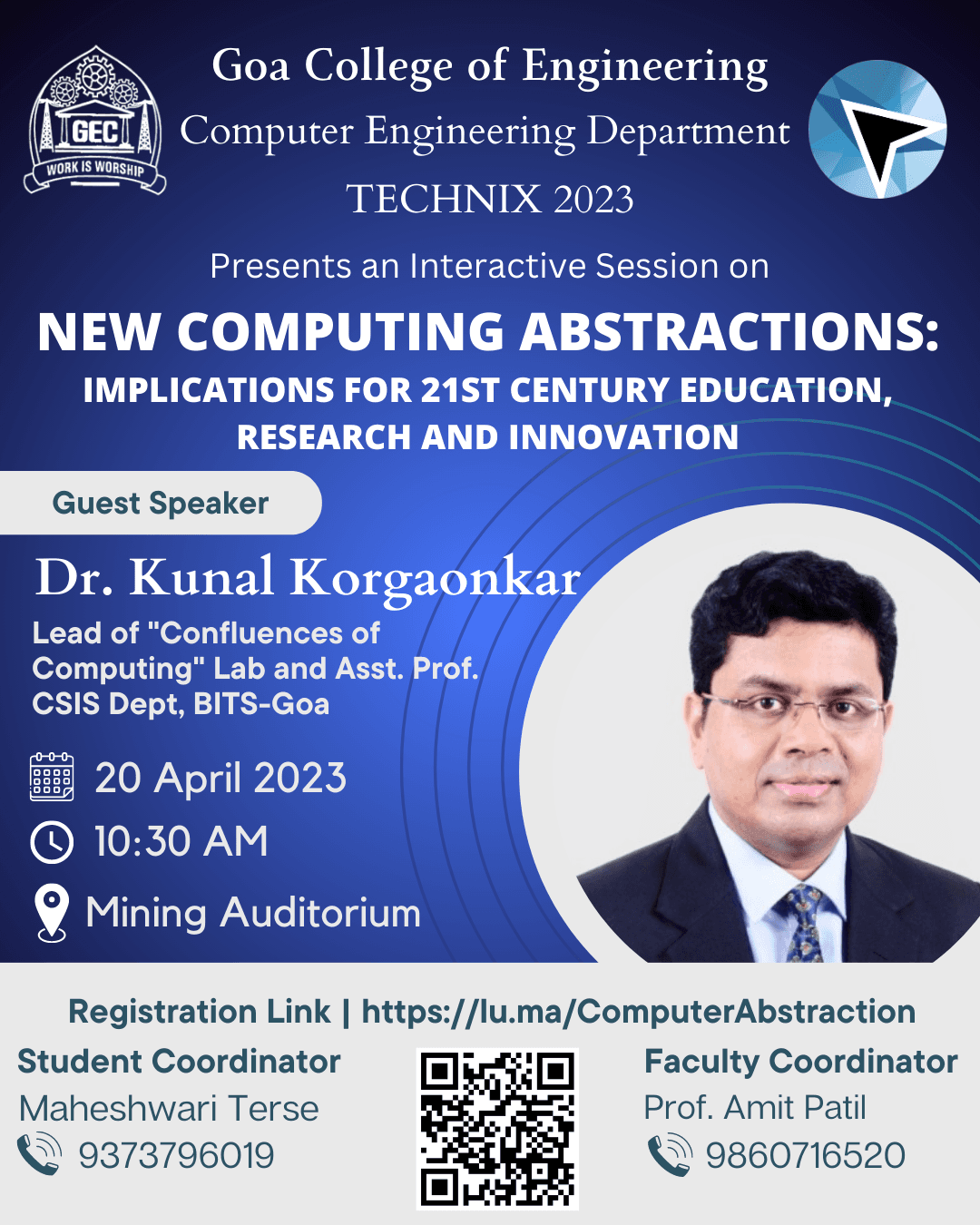 Technix, an annual event organized and hosted by the Computer Engineering Department of Goa College of Engineering. The event houses various competitions wherein students from across Goa compete and showcase their technical knowledge while also immersing themselves in other fun events. In this year's edition, Technix brings to you a set of new and exciting events from the 20th to the 21th Of April 2023.